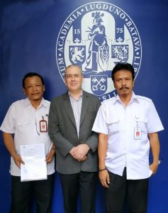 Serah terima hibah dilakukan oleh Marrik Bellen MA, selaku Direktur KITLV-Jakarta dan Office of Leiden University in Indonesia dan Bapak Supriyono, selaku wakil dari Dr. Ahmad Masykuri, MM, Kepala Pusat Preservasi Bahan Pustaka, Perpustakaan Nasional Republik Indonesia.