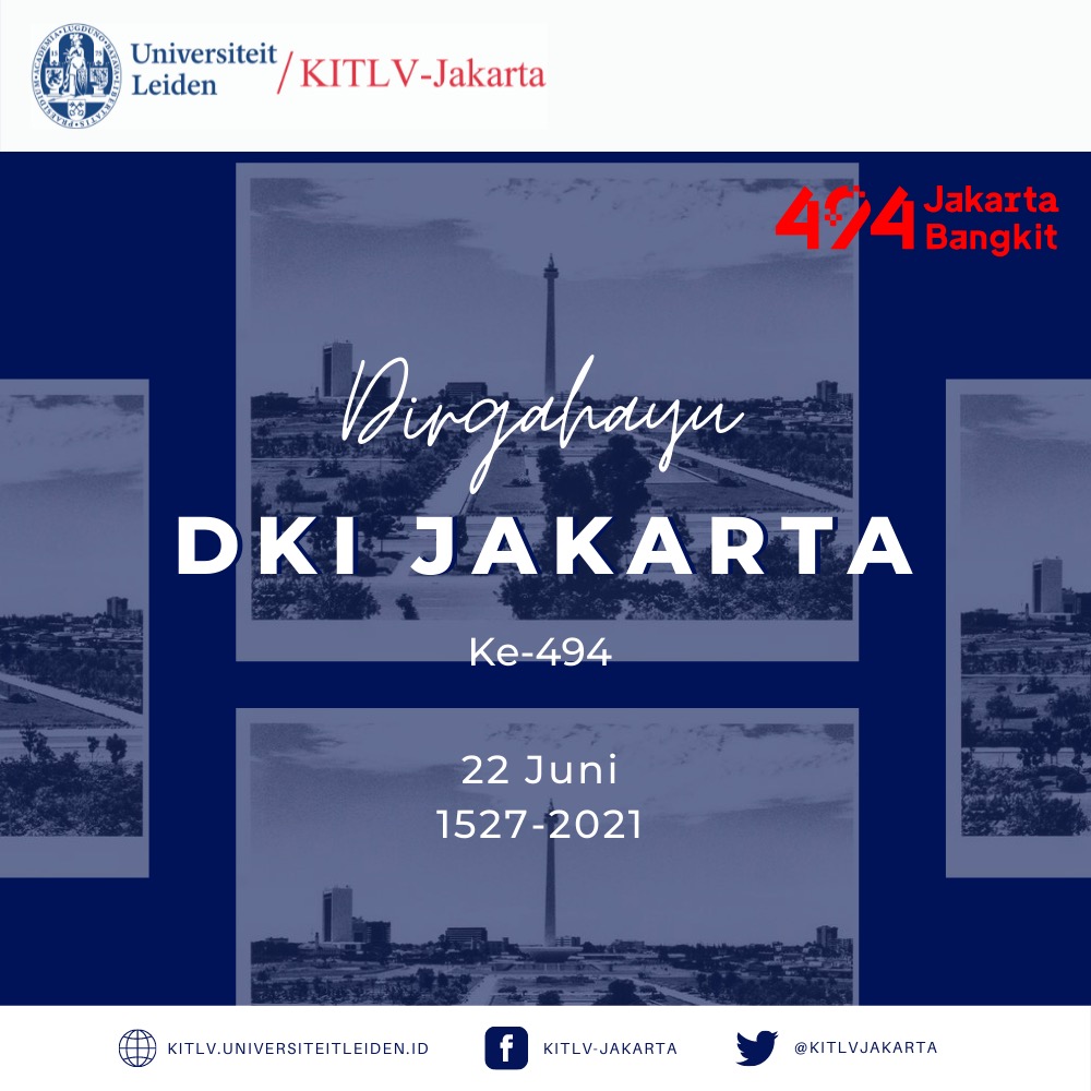 Seluruh Staf KITLV-Jakarta/Leiden Office in Indonesia mengucapkan Selamat ulang tahun Jakarta yang ke-494. Semoga Kota Jakarta semakin berjaya, indah, dan nyaman. Dirgahayu Jakarta!